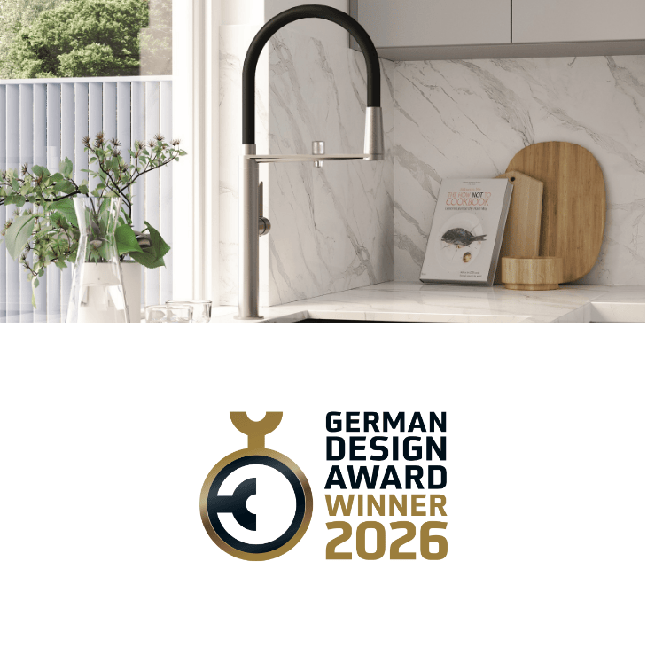 The Pure Water kitchen faucet was awarded the German Design Award 2026. It was praised for its minimalist aesthetic, advanced user experience, and contribution to responsible water consumption.