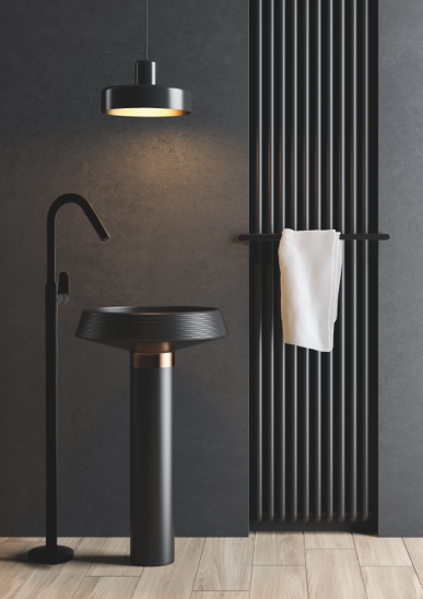 Equipado con la vanguardista colección Alexia negro mate de Ramon Soler®...